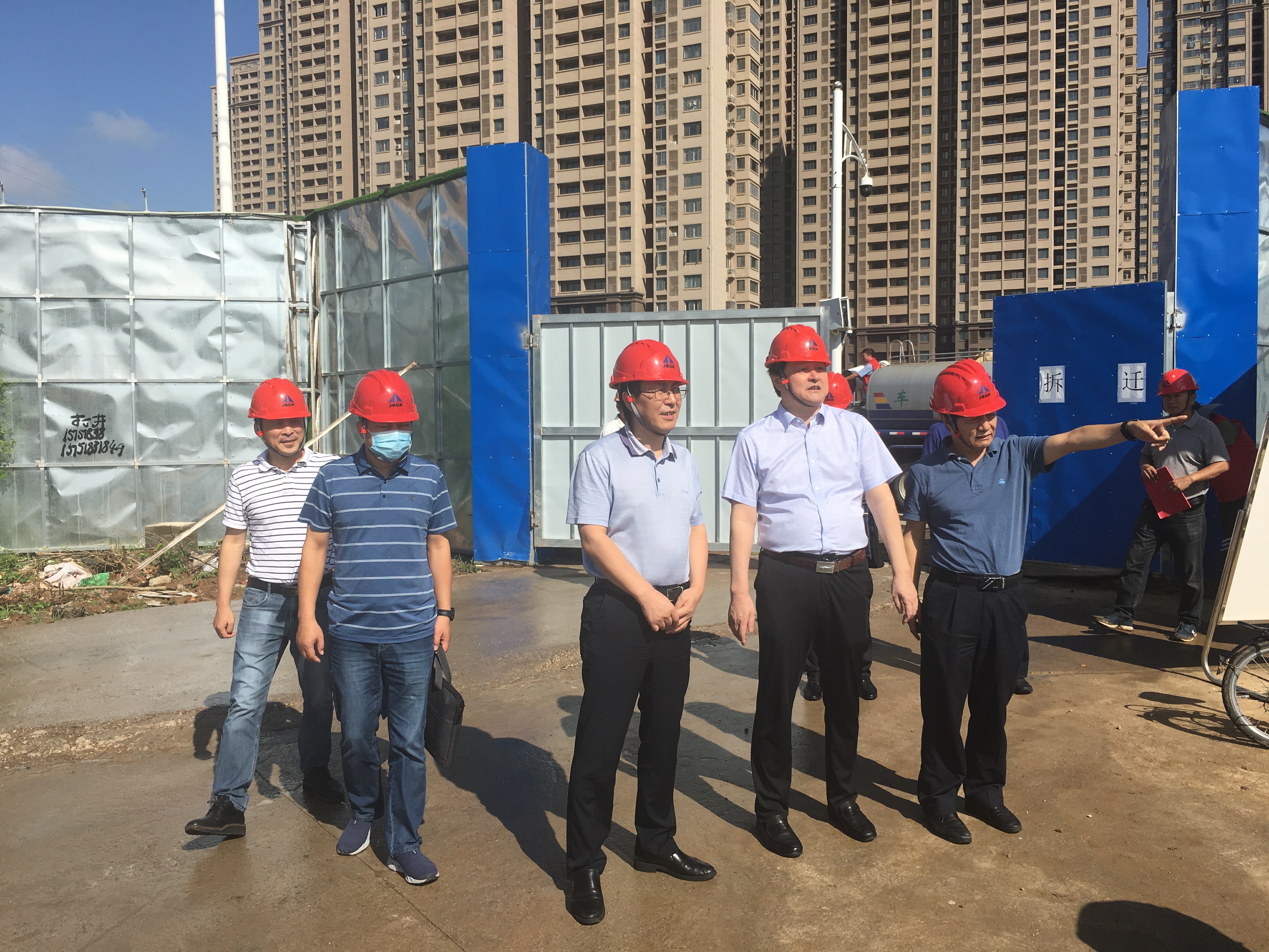 田开洋一行认真听取了我院对该项目开展情况的介绍以及安全生产情况的汇报,实地察看了项目现场机械设备、人员防护、项目台账等情况。王锦强、王伟分别对本次检查中发现的问题提出了整改建议,要求进一步完善现场安全生产管理台账,加强上下联动,强化现场监管。